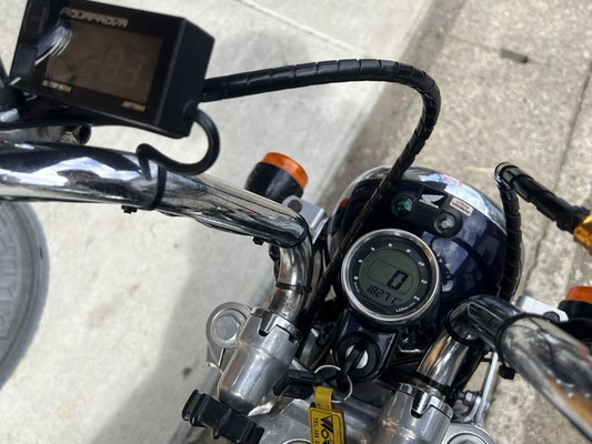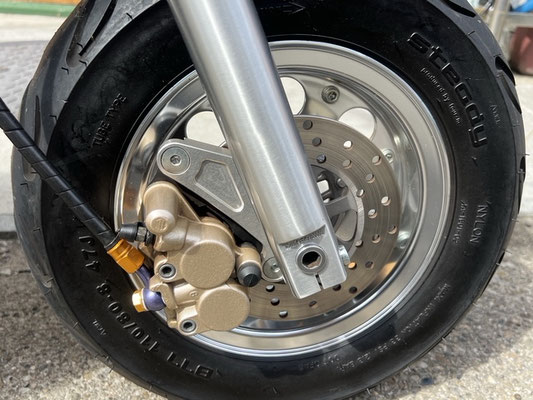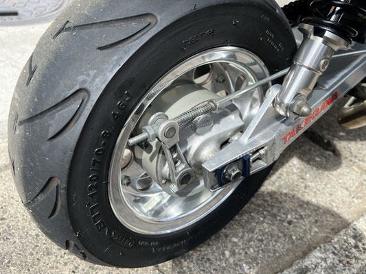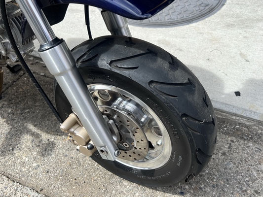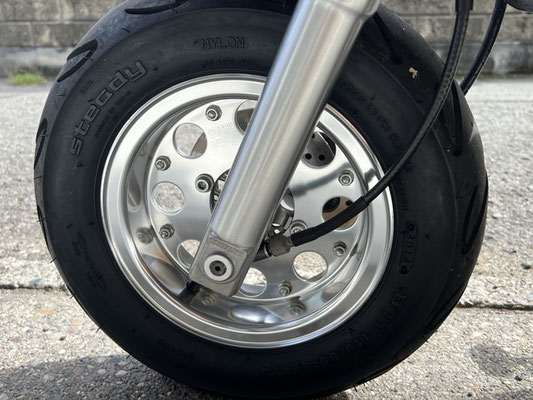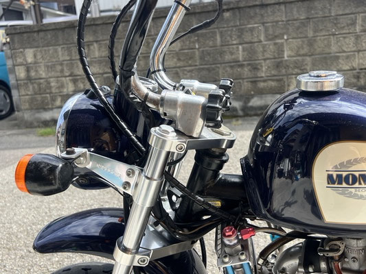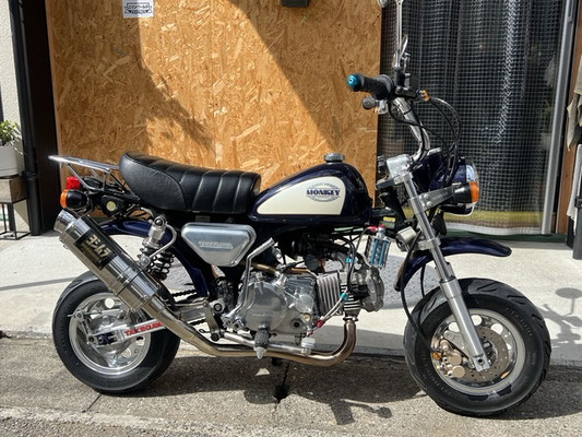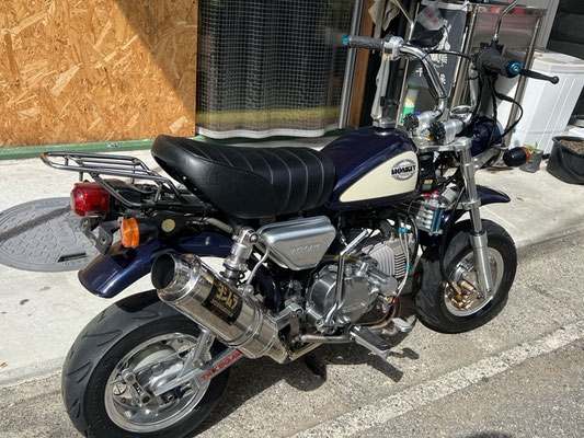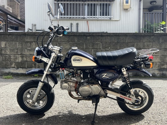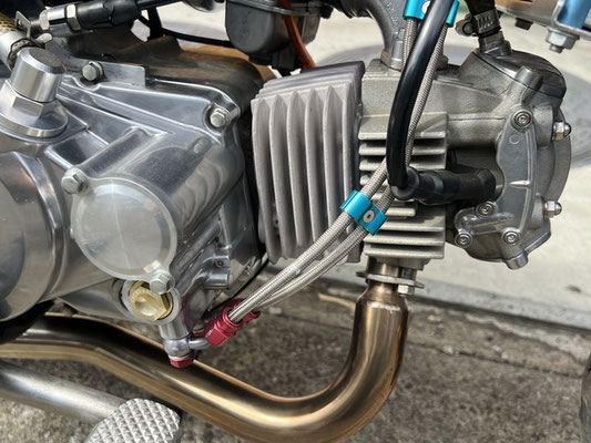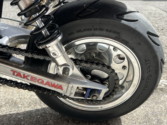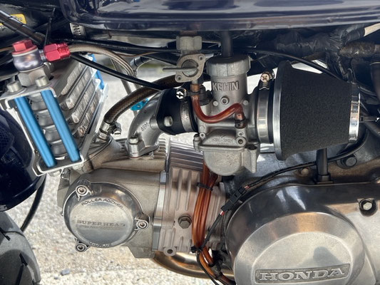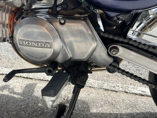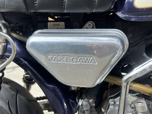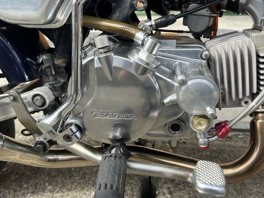 ●タケガワ‥‥4バルブスーパーヘッド88cc、PE28キャブ、スペシャルクラッチ、オイルクーラー、スーパーストリートアウターローター、Φ27フロントフォークディスクキット、アルミ8cmロングスイングアーム、Dタイプスピード&タコメーター、リアドラムダンパーハブ、タックロールシート、オイルキャッチタンク●デイトナ‥‥デジタルテンプメーター、ALリアショック●ヨシムラ‥‥サイクロンマフラー●Gクラフト‥‥フロント2.75×8リア3.5×8アルミホイール |